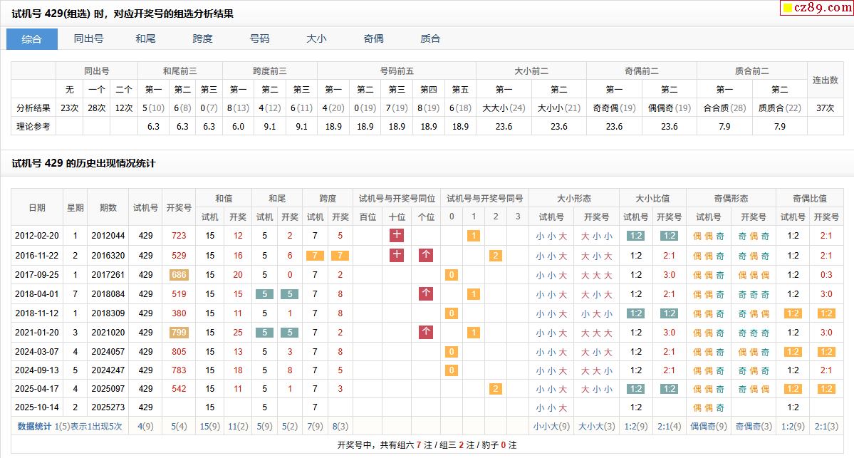 > 273期福彩3D试机号429对应开奖号的组选分析结果