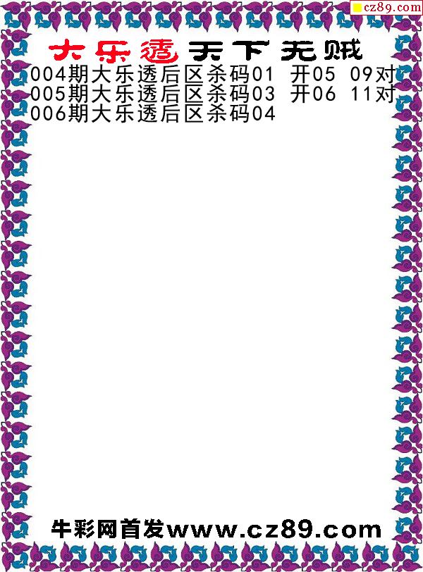 大乐透2026006期天下无贼后区杀号图谜